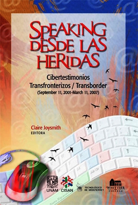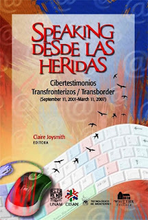 SPEAKING DESDE LAS HERIDAS. CIBERTESTIMONIOS TRANSFRONTERIZOS-TRANSBORDER (SEPTEMBER 11, 2001’ MARCH 11 2007) editado por Claire Joysmith. TEXTO: Versión inicial. Testimonio: Once poemas a principios de 2001: Visión testimonial de cosas por pasar y cómo en vértigo una herida se desangra por otra. Páginas 618-621.
